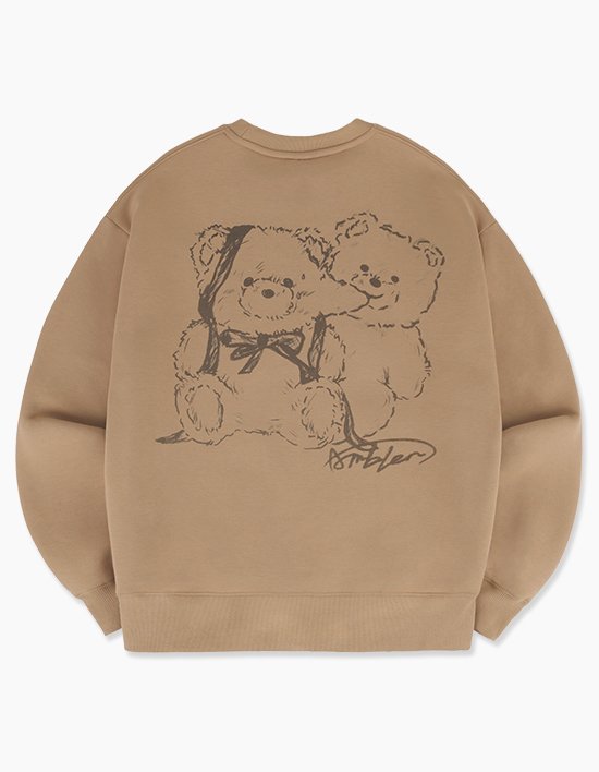 귀여운 모습에 앙!하고 물어버린 장난끼 가득한 엠블러 곰돌이, 연필로 그린듯한 나염이 더욱 감성적인 느낌을 주는 오버핏 맨투맨
