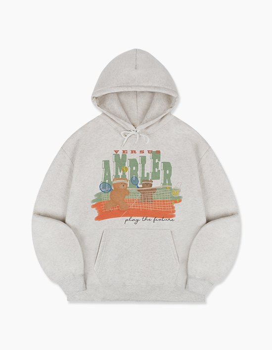 테니스 시합중인 두 곰돌이의 박진감 넘치는 모습을 그려낸 오버핏 후드 티셔츠