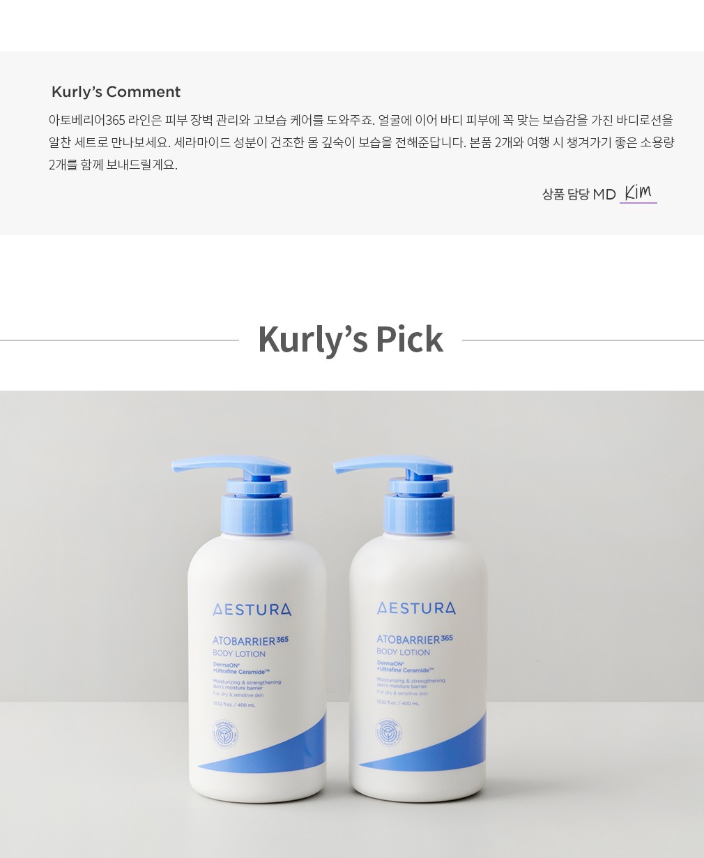 ・ 특징 : 아토베리어365 바디로션 2개(각 50mL)를 함께 보내드립니다.