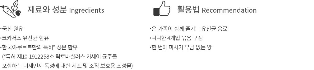 ・특징 : 국산 원유의 깊고 풍부한 맛이 느껴지는 발효유예요. 고소하면서 달달한 맛으로 부담 없이 즐길 수 있어요.