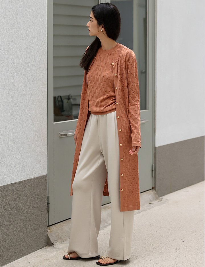 아가일 패턴이 특징인 아이템으로 너무 핏하지 않고, 스탠다드하게 떨어져 라인을 잡아주는 가디건원피스입니다.