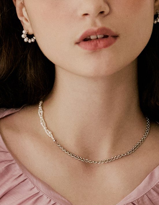 꼬인 형태와 독특한 디자인의 체인을 연결하여 여성스러우면서도 캐주얼한 무드를 주는 목걸이 입니다.