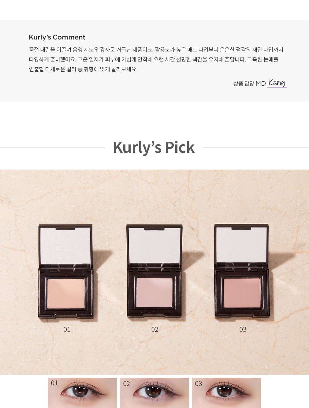 활용팁 ・ 눈두덩이 이외에도 아래 눈꺼풀, 아이홀에 바르거나 하이라이터로 활용해도 좋아요.