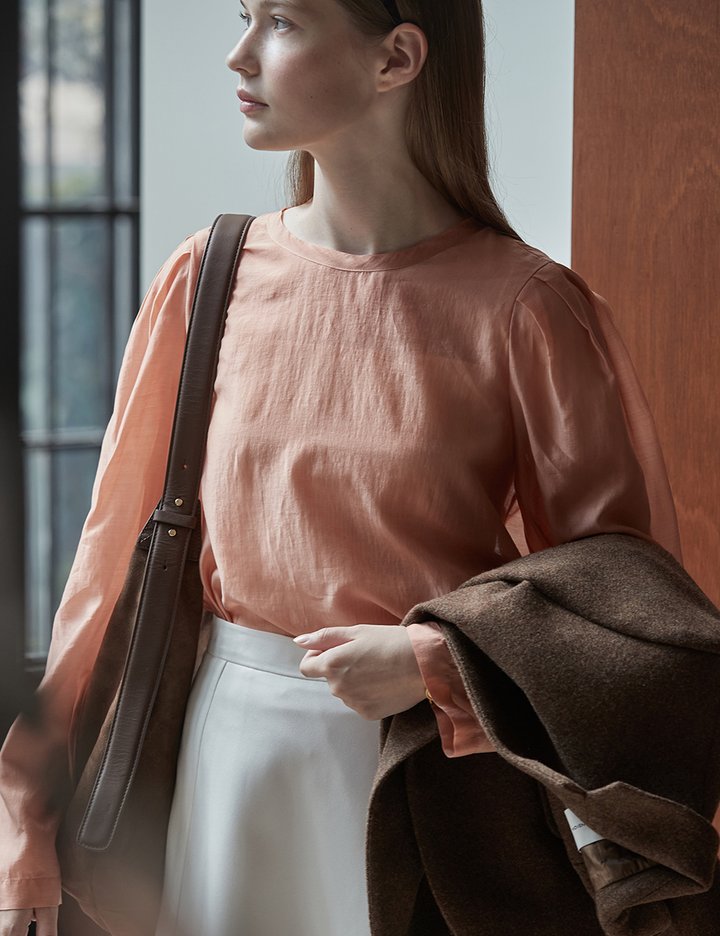 [비뮤즈맨션] 쉬어 볼륨 블라우스 살몬 버프