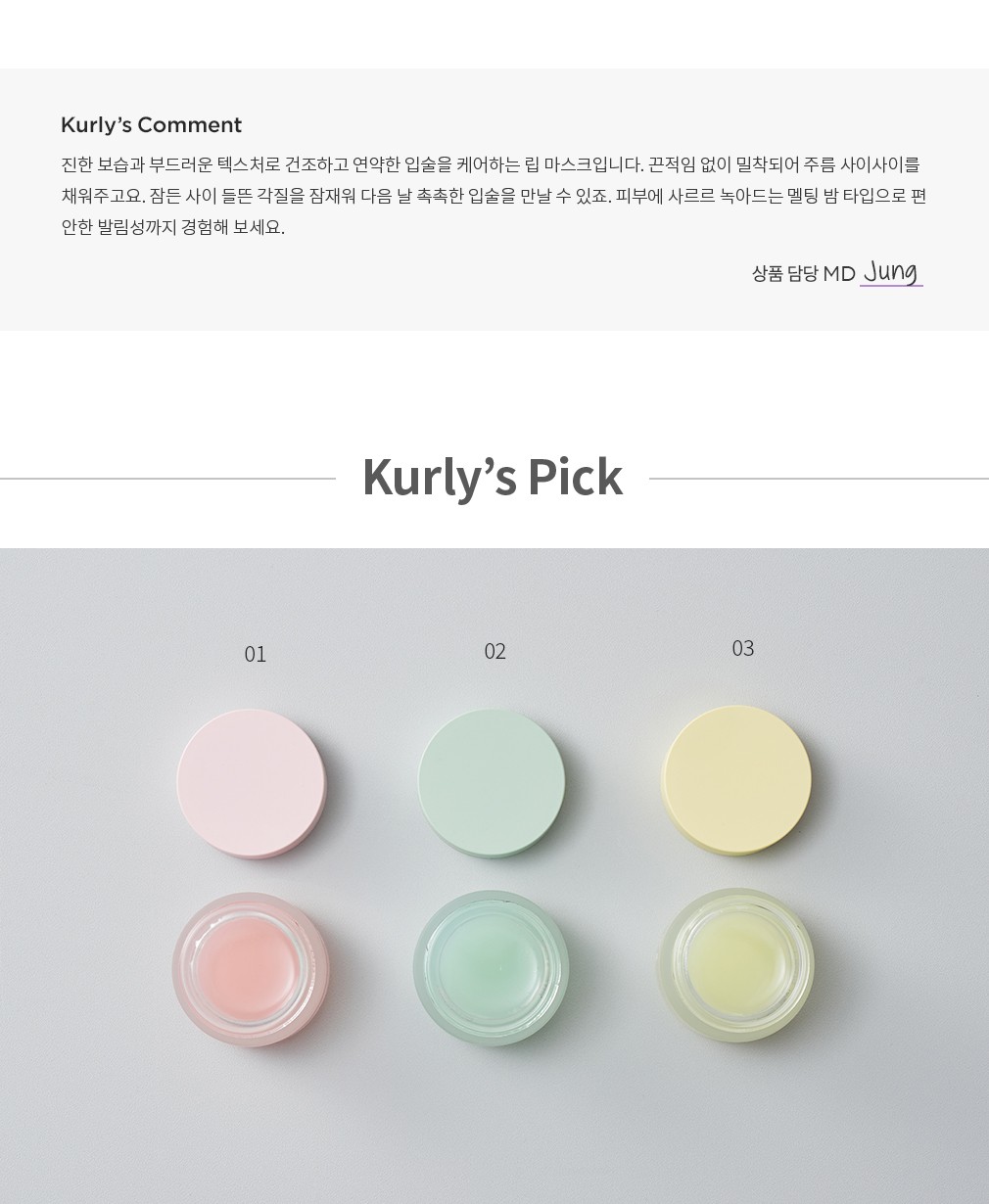 ・특징 : 허브 성분을 함유해 지친 입술에 상쾌한 쿨링감을 선사해요.