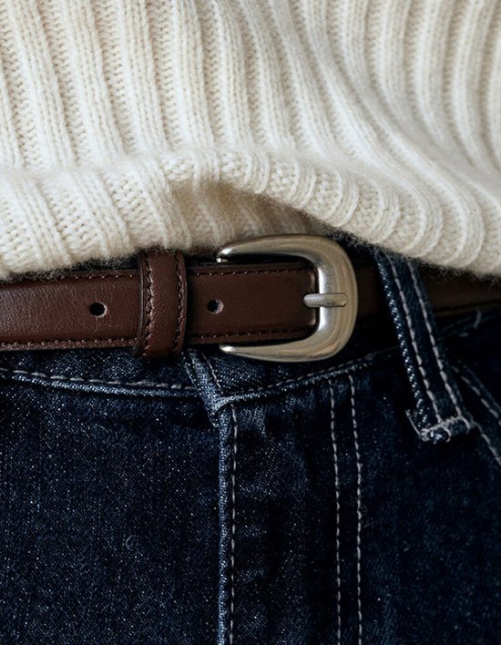 [로에일] 심플 슬림 레더 벨트 - 브라운