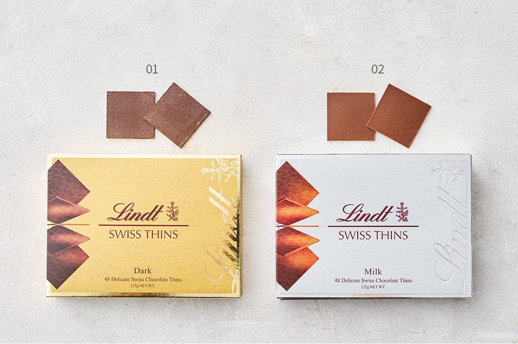 두께를 확인하세요 ・컬리에서 판매하는 린트의 스위스 클래식 초콜릿과 스위스 씬즈 초콜릿의 두께를 비교해 보세요. 두툼하고 묵직한 클래식과 얇고 가볍게 부러지는 씬즈를 취향에 따라 즐길 수 있어요.