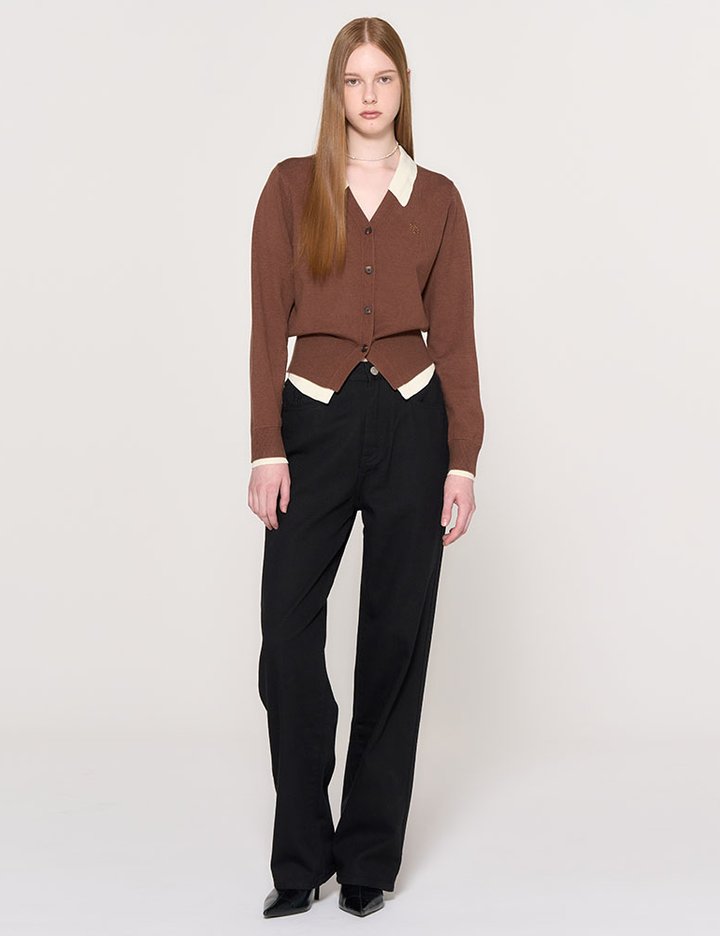 [제너럴아이디어] 에센셜 카라 레이어드 가디건 BROWN / WBD3L04524