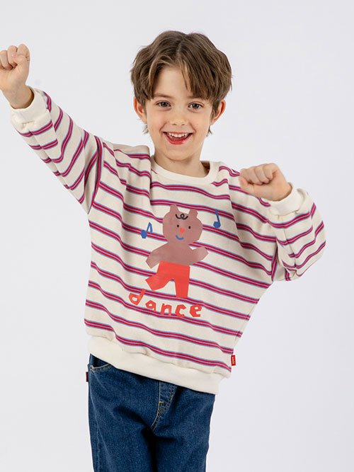 선명한 색감의 스트라이프 곰돌이 맨투맨