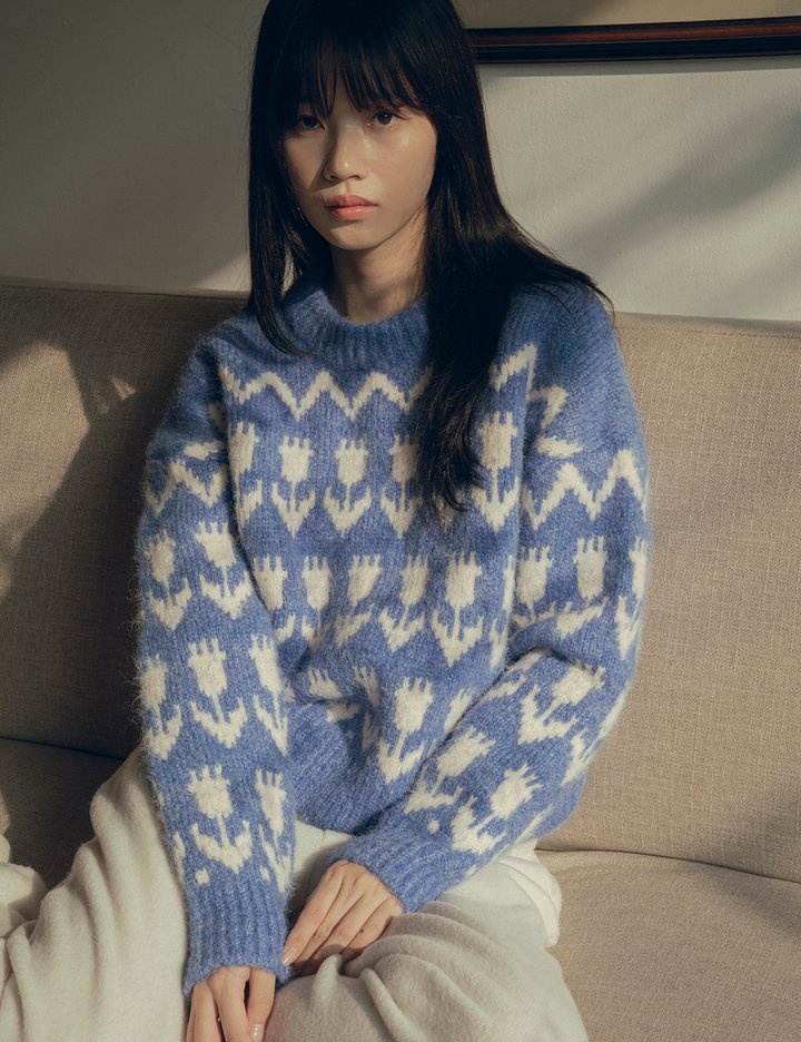 [반원 아틀리에] 플라워 헤어리 울 니트_블루(KN4240)