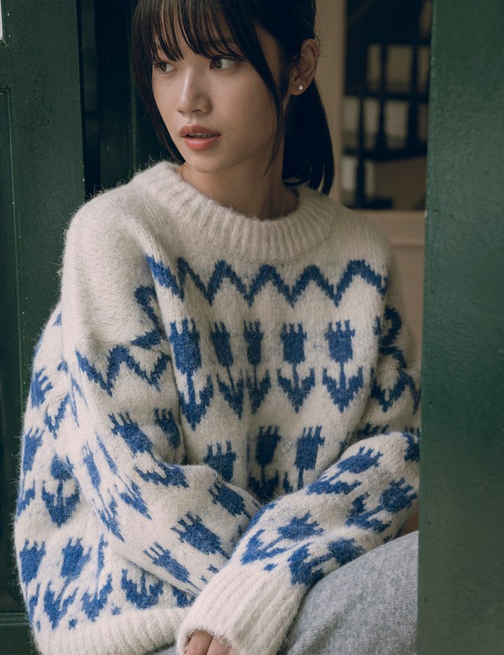 [반원 아틀리에] 플라워 헤어리 울 니트_크림(KN4240)