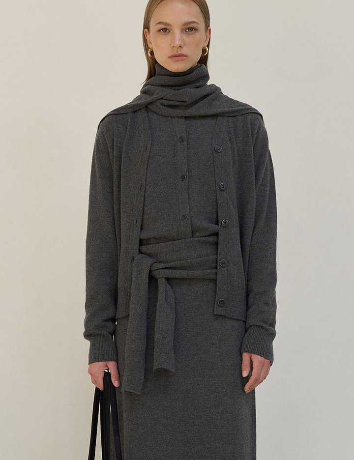 "슈퍼파인 메리노울 소재감으로 부드럽고 고급스러운 무드가 느껴지는 니트 가디건입니다. 베이직한 디자인에 머플러를 추가하여 페미닌한 스타일링으로도 연출이 가능하며 레귤러 핏으로 이너와 레이어드 하기 좋습니다."