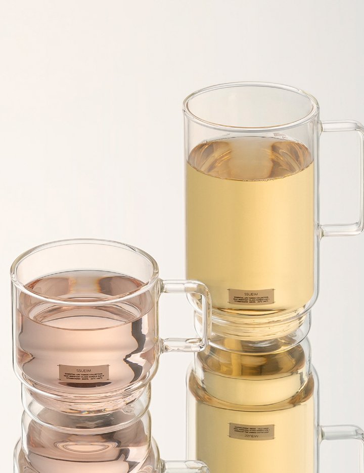 [쓰임] 에센셜 이중 내열 핸들 유리컵 2종 세트(M+L) (단품)