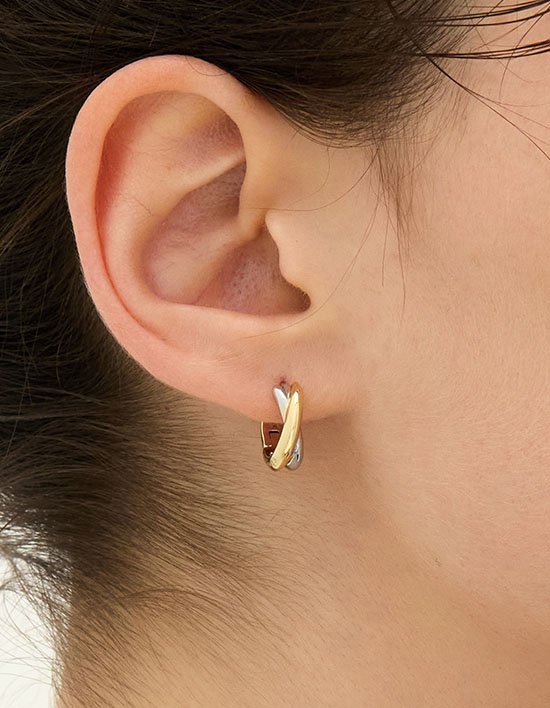 [이에르로르] 수브니 실버(C) 트위스트 원터치 귀걸이 S (콤비)