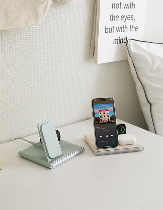 [무아스] 23W 플립스퀘어 3in1 고속 무선충전기 무드등 거치대