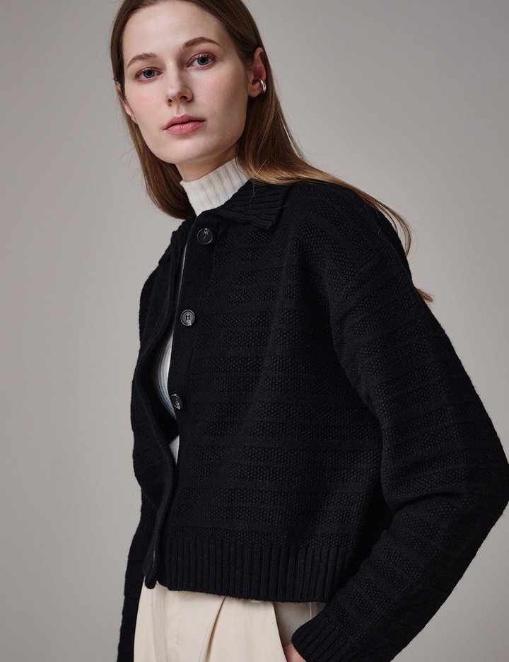 [생럭슈] 골지 카라 가디건 블랙
