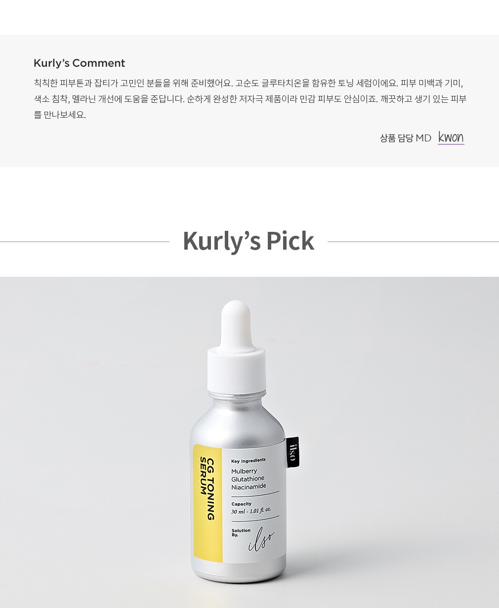 ・특징: 글루타치온을 함유한 저자극 토닝 세럼이에요. 피부 미백과 기미, 색소 침착, 멜라닌 개선에 도움을 줍니다.
