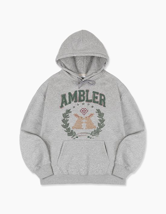 사랑을 약속하는 두마리 토끼의 모습을 그려낸 자수 후드 티셔츠, 러블리한 컬러감과 색다른 자수 스티키 기법으로 포인트를 주었습니다.