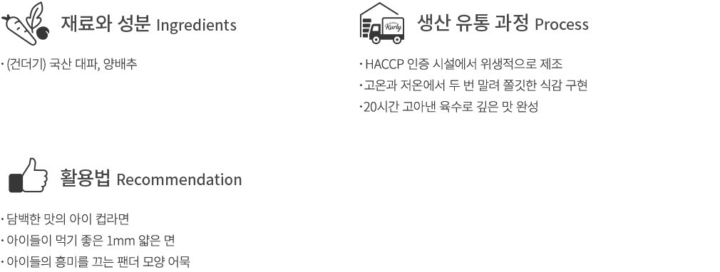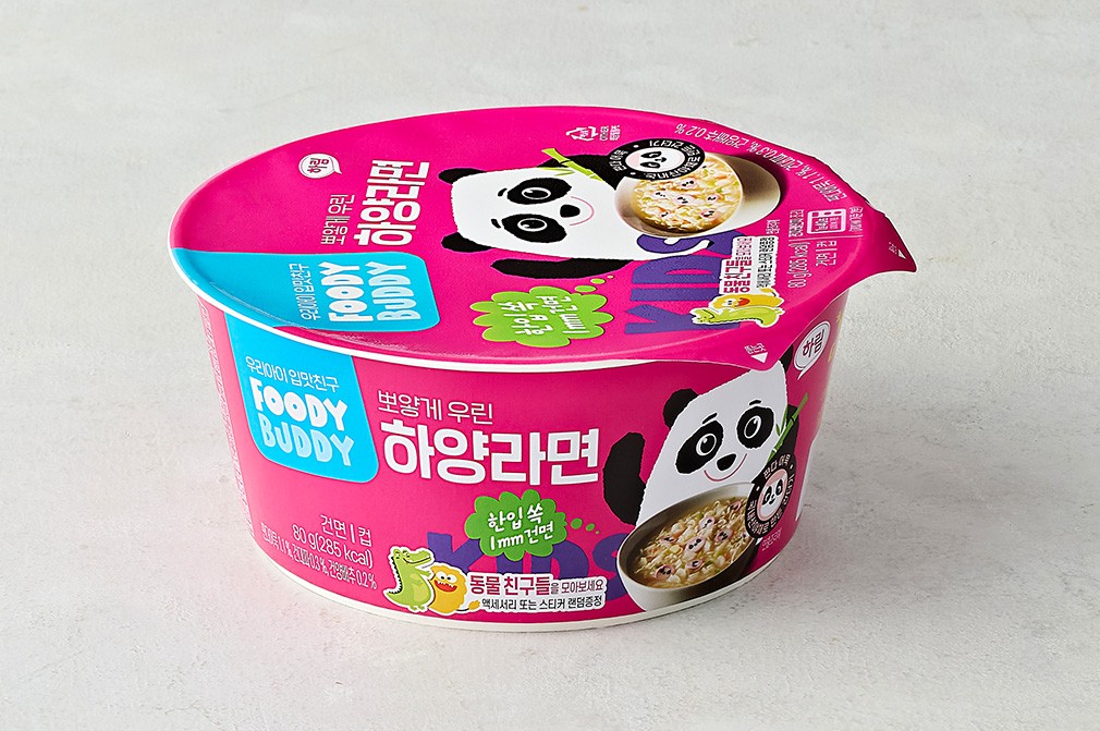 사골과 우골, 소고기 양지를 고아낸 뽀얀 국물로, 아이들이 맛있게 즐길 수 있는 푸디버디의 하양라면이에요. 1mm로 얇게 뽑아낸 뒤, 고온과 저온에서 두 번 말린 면을 사용해 한층 쫄깃한 식감이 돋보이죠. 팬더 모양 어묵까지 쏙쏙 골라 먹는 재미가 있어 아이들이 좋아할 거예요.
