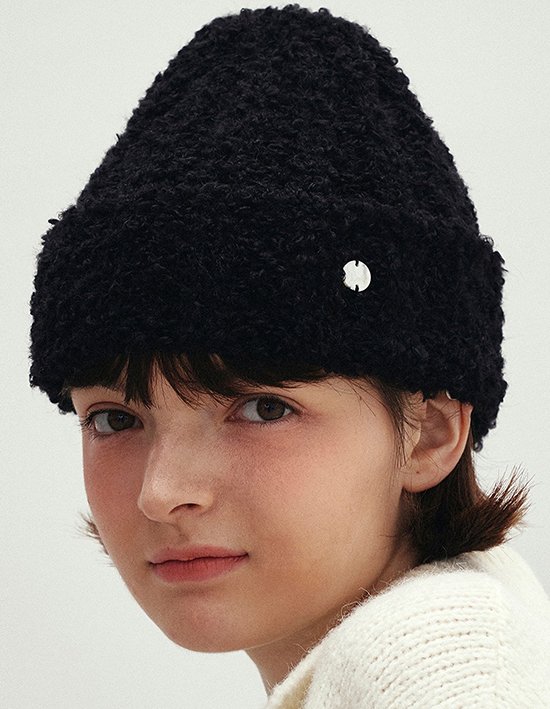 [로에일] 플러피 부클 울 비니 - 블랙