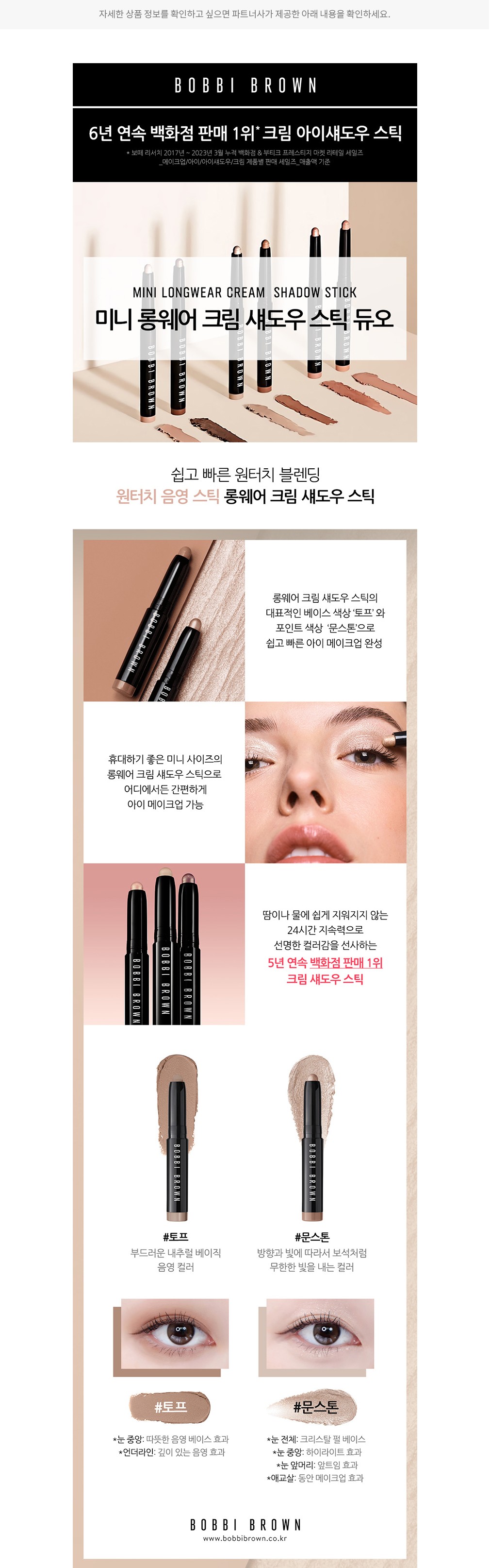 [바비 브라운] 미니 롱웨어 크림 섀도우 스틱 듀오(토프,문스톤)