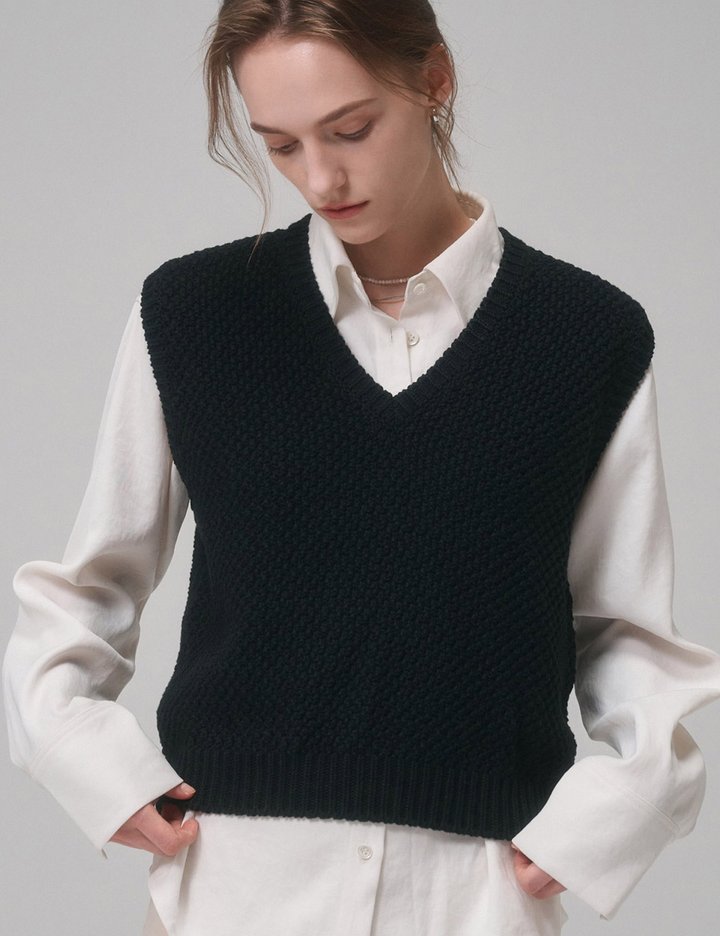 [생럭슈] 가네꼬 니트 베스트 블랙