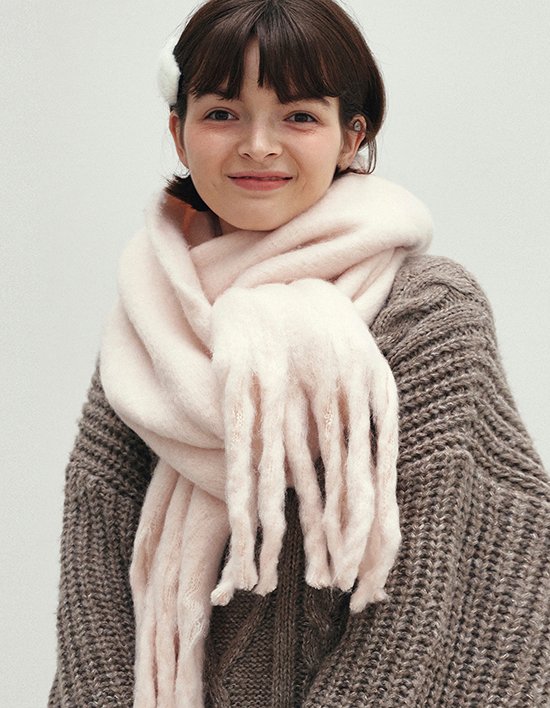 [로에일] 퍼스트 라벨 볼드 머플러 - 소프트 핑크