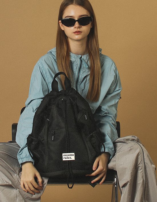 [마스마룰즈] 지퍼 스트링 백팩 _ 블랙 (단품)