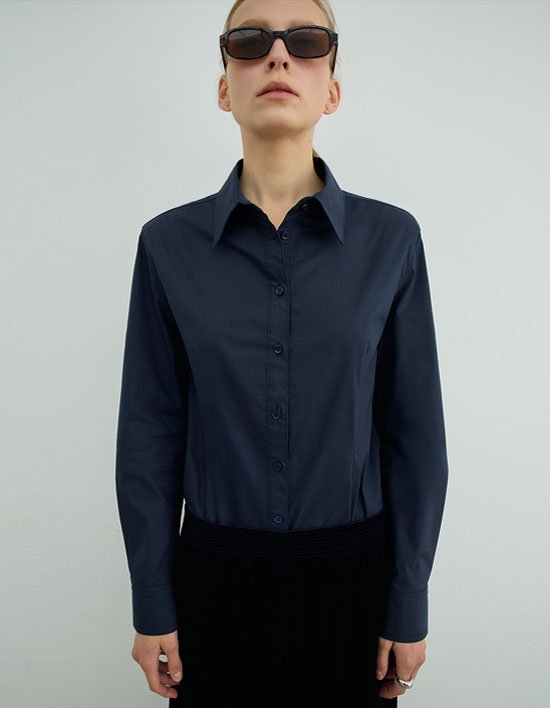 페미닌한 라인이 완성되는 슬림핏 라인 숄더 패드 코튼 셔츠