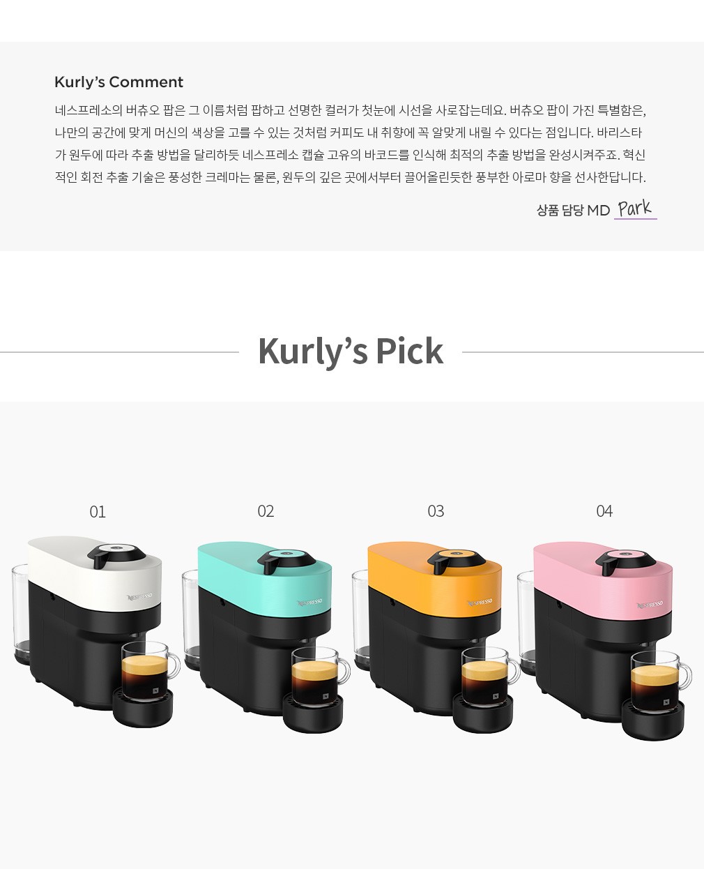 01~04. 버츄오 팝 ・ 선택가이드 : ①코코넛 화이트, ②아쿠아 민트, ③망고 옐로우 ④캔디 핑크 중 색상에 따라 선택하세요.