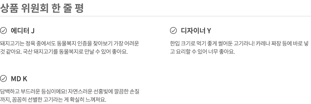 나와 내 가족이 먹고 쓸 상품을 고르는 마음으로 매주 상품을 직접 먹어보고, 경험해보고 성분, 맛, 안정성 등 다각도의 기준을 통과한 상품만을 판매합니다.(온라인 기준 / 자사몰, 직구 제외)
