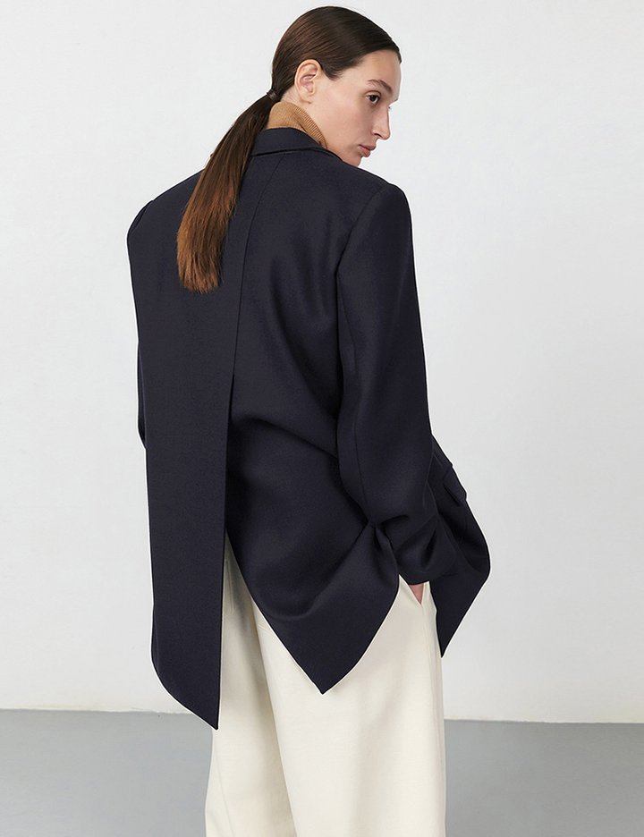 울 함량이 높아 포근하게 착용되는 클래식한 무드의 더블 하프 코트