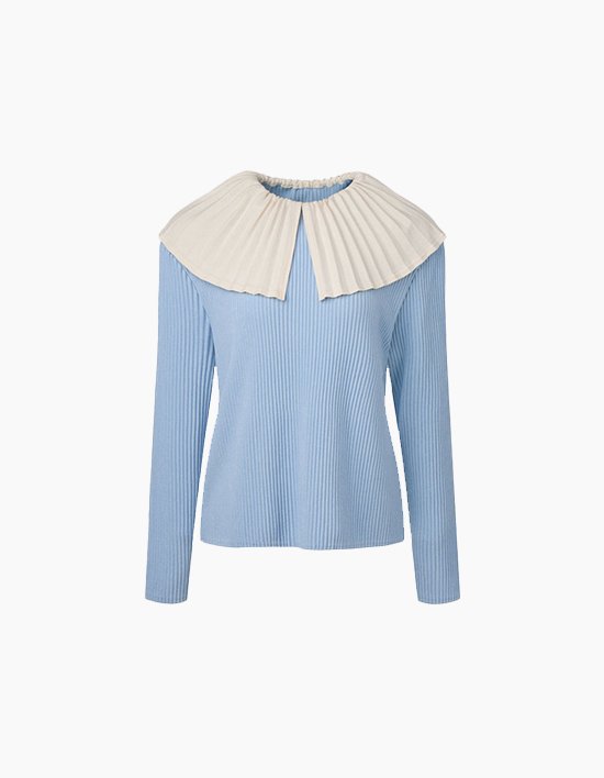 [몽플리쎄] 여성 아꼬르디옹 카라넥 플리츠 탑 (라이트 블루)