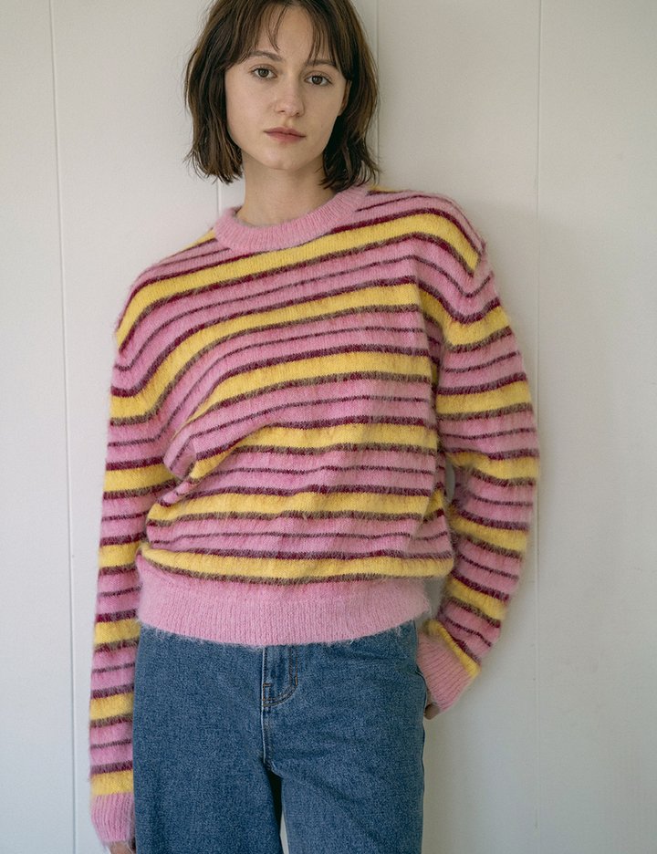 [반원 아틀리에] 헤어리 스트라이프 니트_핑크(KN4255)