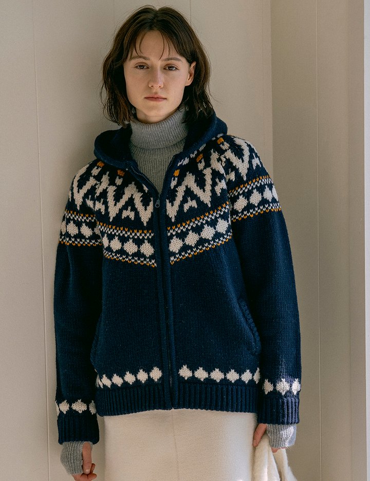 [반원 아틀리에] 노르딕 니트 후드 집업_네이비(KN4242)