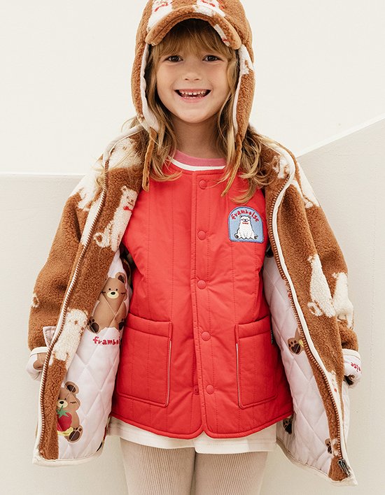 [마이리틀스타] 곰 경량패딩 조끼 - 레드