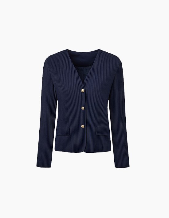 [몽플리쎄] 여성 논카라 플리츠 자켓 (네이비)