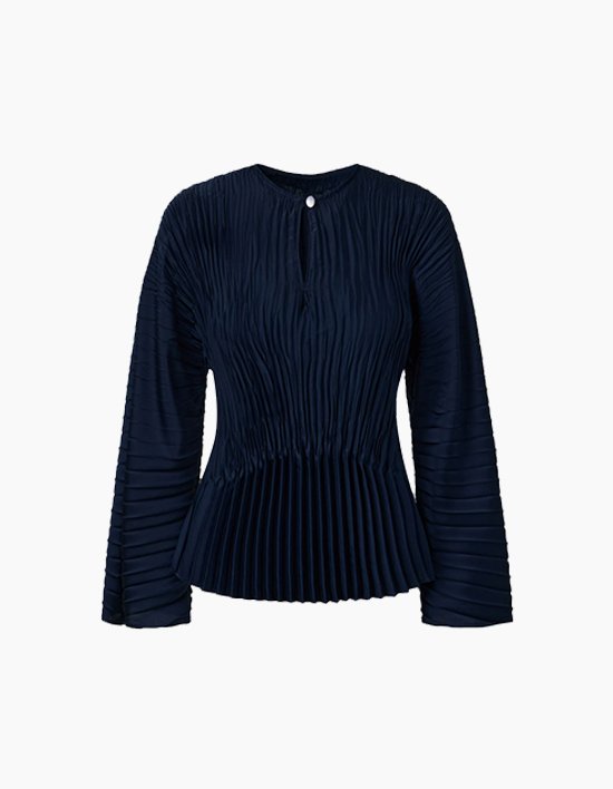 [몽플리쎄] 여성 데님 플리츠 바리에 블라우스 (네이비)