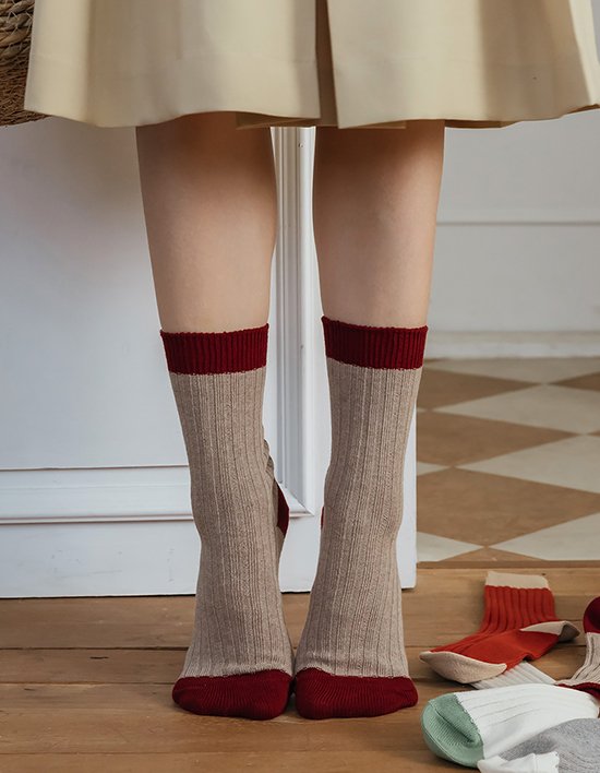 [비아리츠] 텐텐 배색 골지 삭스 6종 (3개입) (택1)