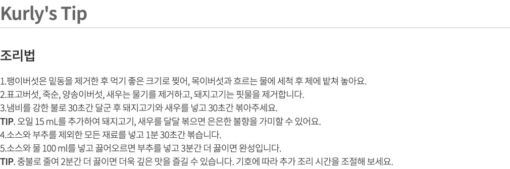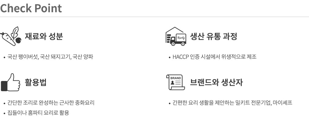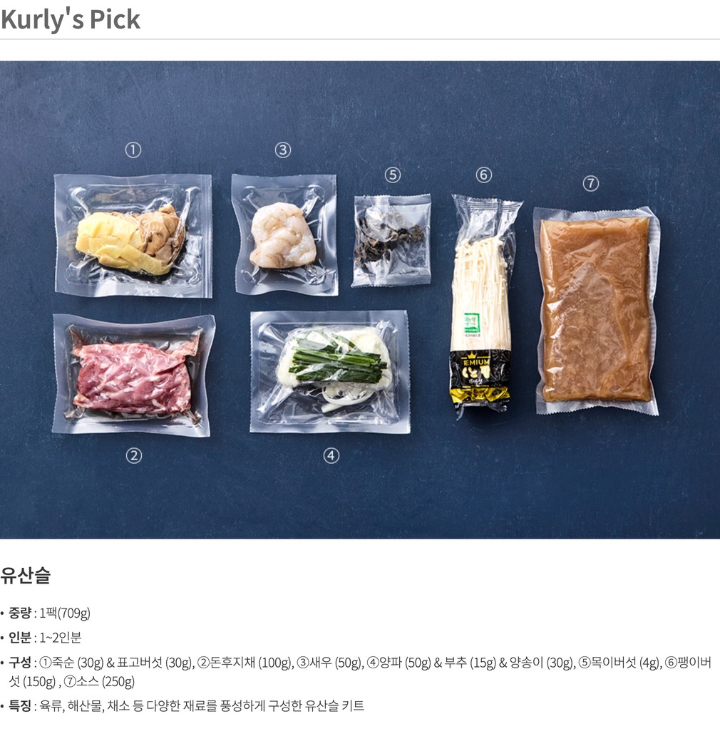- 우유, 대두, 밀, 새우, 돼지고기, 닭고기, 조개류(굴) 함유