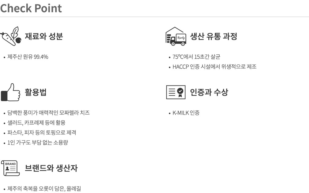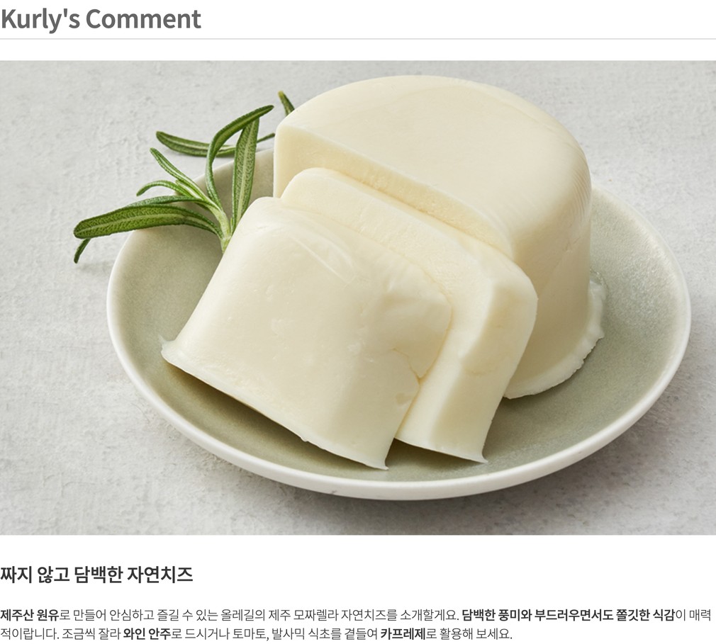 [올레길] 제주 모짜렐라 자연치즈 100g