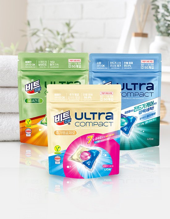 비트 울트라 콤팩트 실내건조 캡슐세제 50입 / 비트 울트라 추가헹굼제로 캡슐세제 50입 / 비트 울트라 딥프레시 진드기케어 캡슐세제 50입