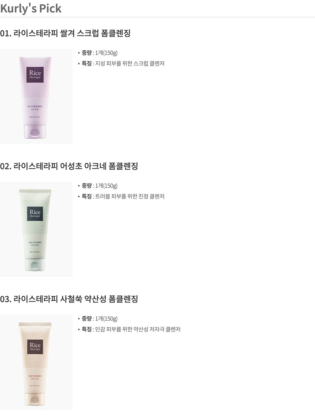 [온더바디] 라이스테라피 폼클렌징 150g 3종 (택1)