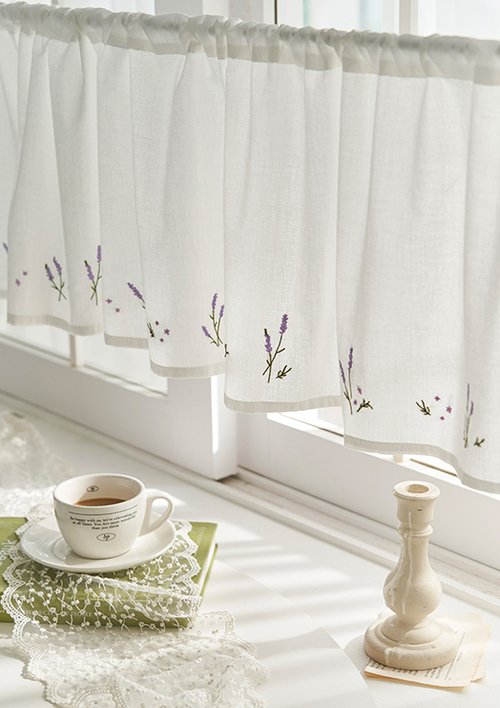 [데코뷰] 라벤더가든 자수 주방커튼