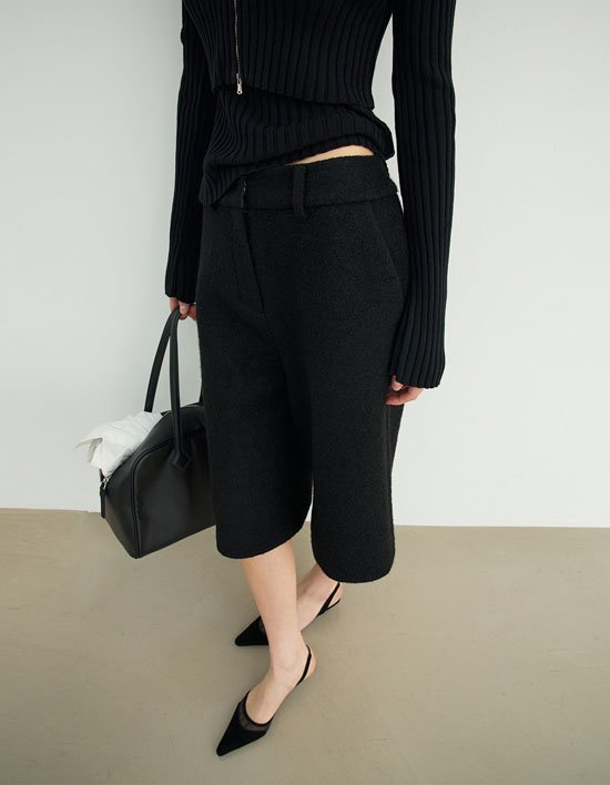 고밀도의 울100% 원단으로 제작된 로우라이즈 버뮤다 윈터 울 하프 팬츠