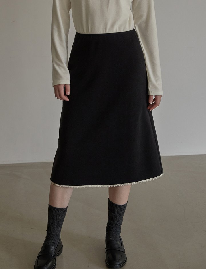 [비뮤즈맨션] 레이스 디테일 A라인 스커트 블랙
