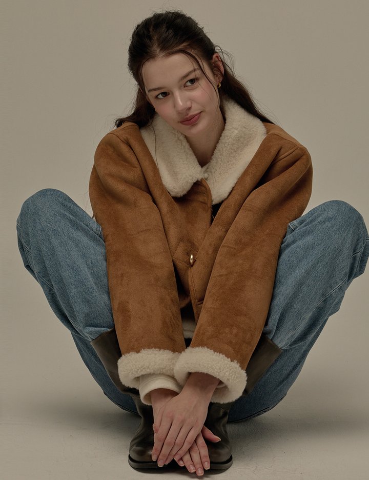 [비뮤즈맨션] 골드 버튼 무스탕 자켓 브라운
