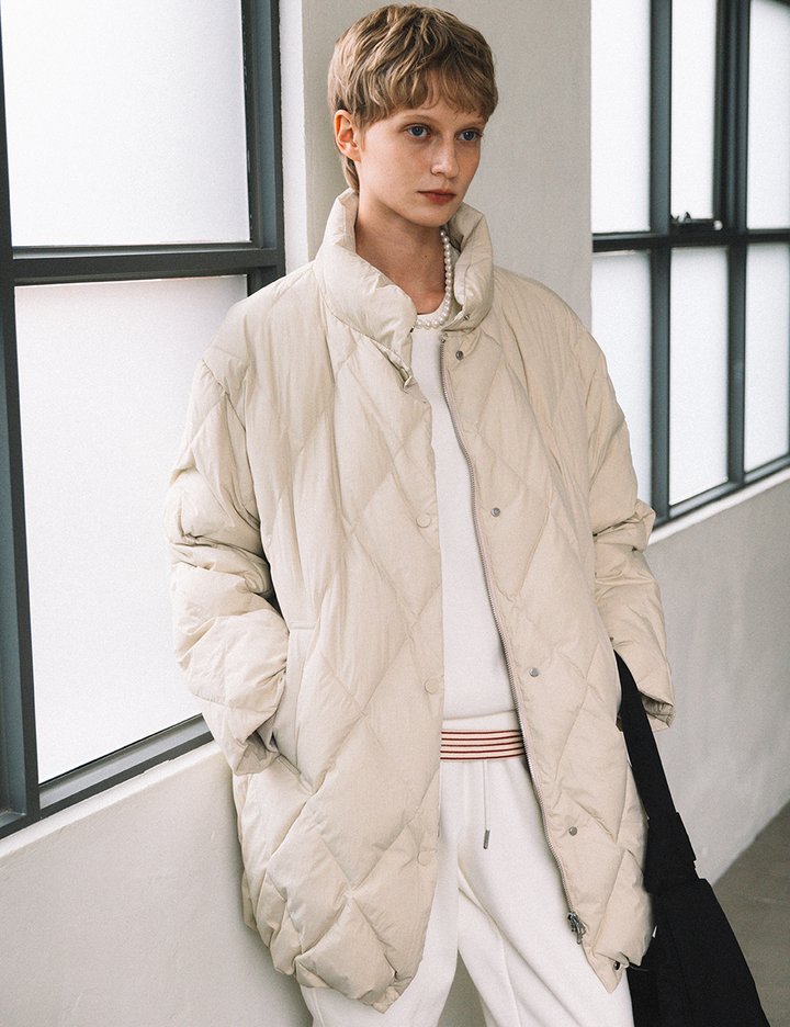 다이아몬드 패턴이 적용되어 포근함이 물씬 느껴지는 패딩입니다. 가벼운 착용감과 덕 다운의 보온성이 더해져 실용적이며 다양한 스타일에 잘 어울리는 아이템입니다.