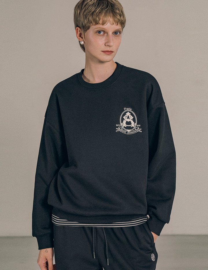 [시야쥬] 로열 자수 기모 스웨트 셔츠_블랙(SITP5173)