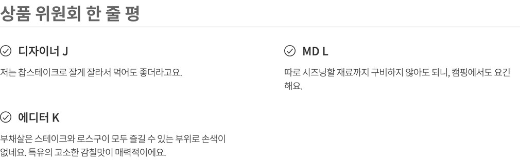 나와 내 가족이 먹고 쓸 상품을 고르는 마음으로 매주 상품을 직접 먹어보고, 경험해보고 성분, 맛, 안정성 등 다각도의 기준을 통과한 상품만을 판매합니다.(온라인 기준 / 자사몰, 직구 제외)